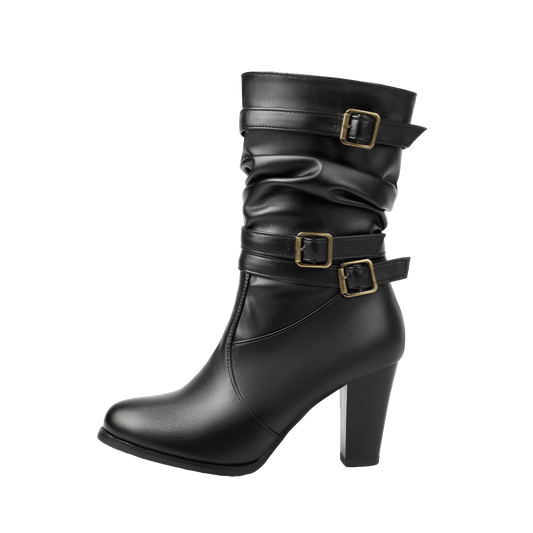 Bota Cléo Cano Médio Enrugado Salto Fino