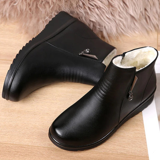 Bota Warm Cano Alto Forrada Peluciada Impermeável Couro Preta