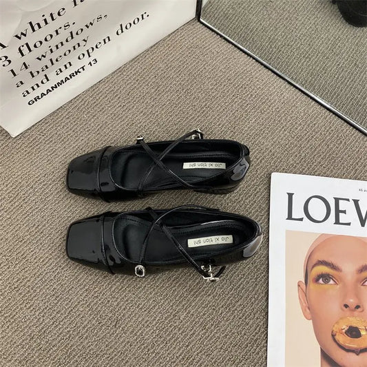 Sapatilha Rute Luxo Bico Quadrado Fecho Sapato Mary Jane