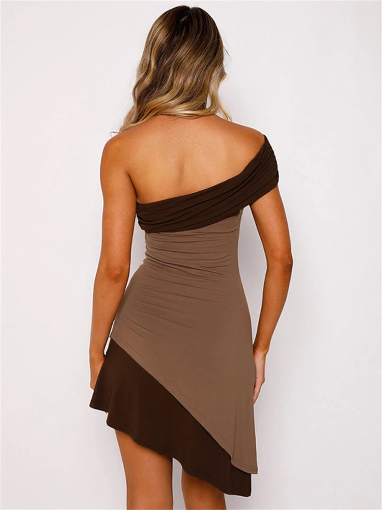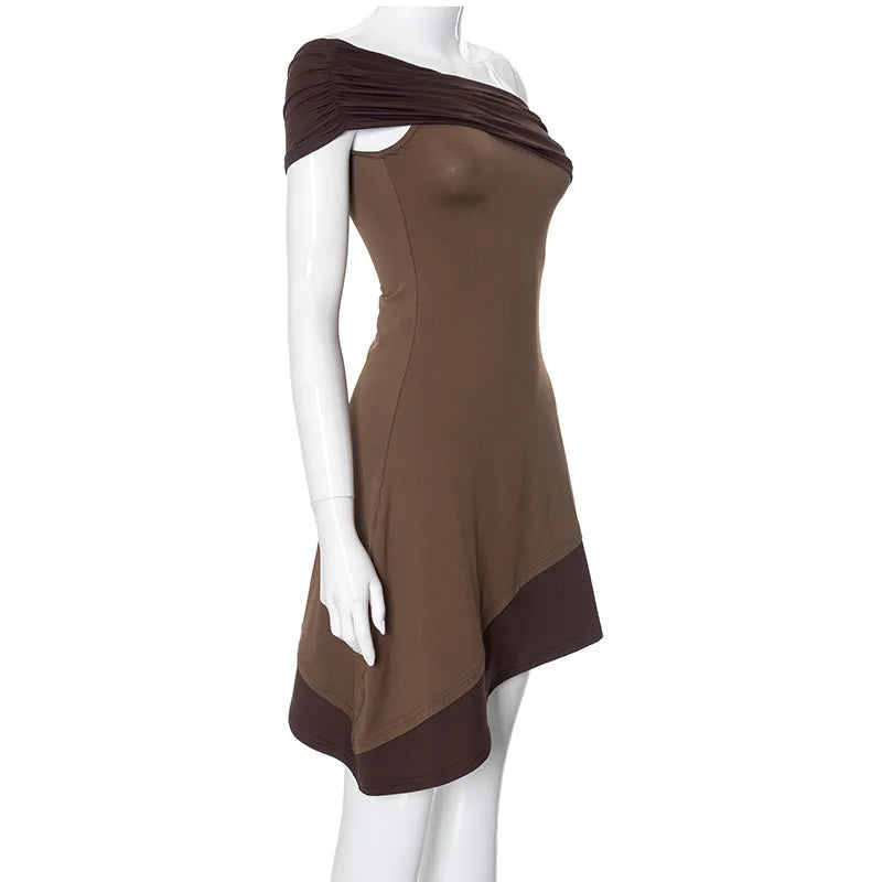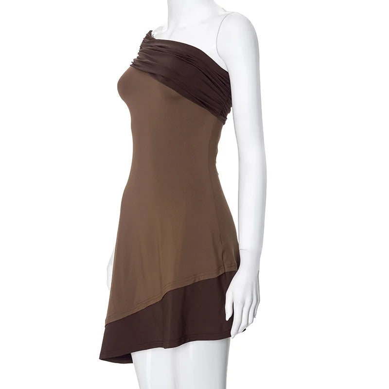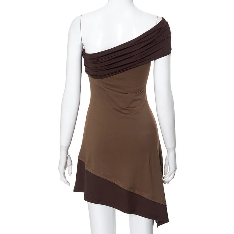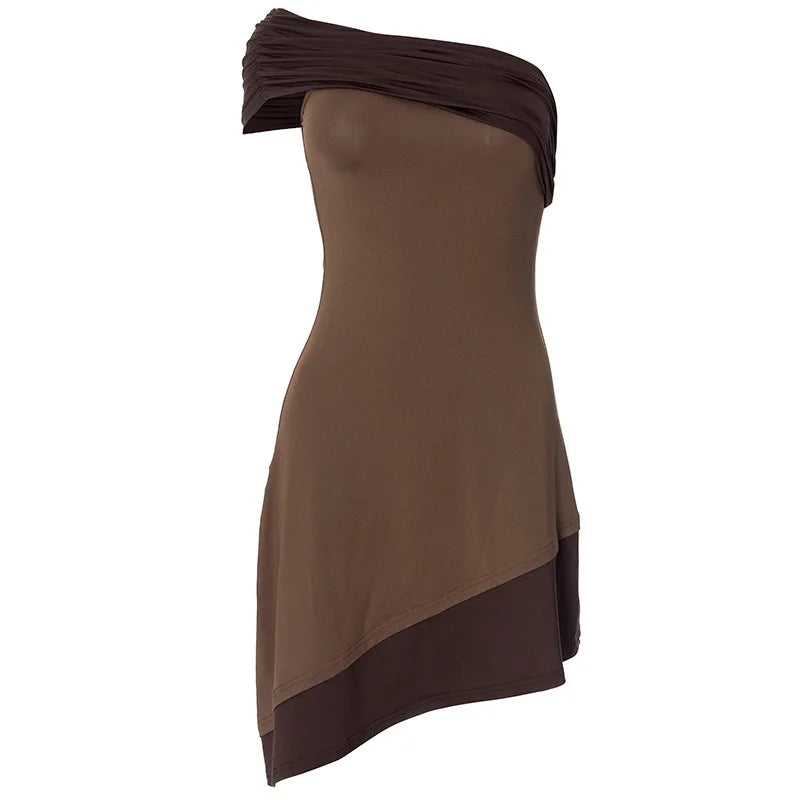 Vestido Curto Assimétrico Marrom