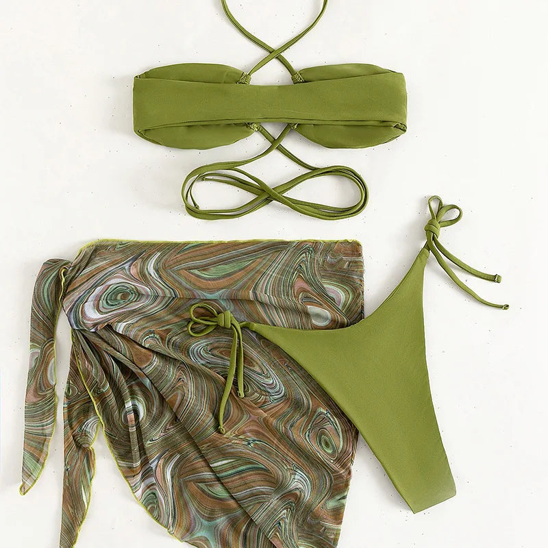 Com amarração estratégica e saia integrada, ele é o conjunto perfeito para quem quer dominar o verão com confiança e ousadia. Disponível em cores vivas que capturam olhares e exalam energia, este biquíni é mais que uma peça de moda – é uma declaração de poder.