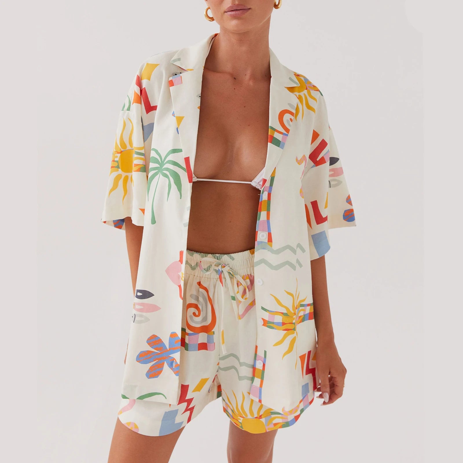 O Conjunto Fiorella é a escolha ideal para quem deseja unir elegância e conforto em um look deslumbrante. Composto por um short e uma camisa de botão estampados, este conjunto é feito de um material fresco e confortável, perfeito para destacar sua beleza com um toque de sofisticação.