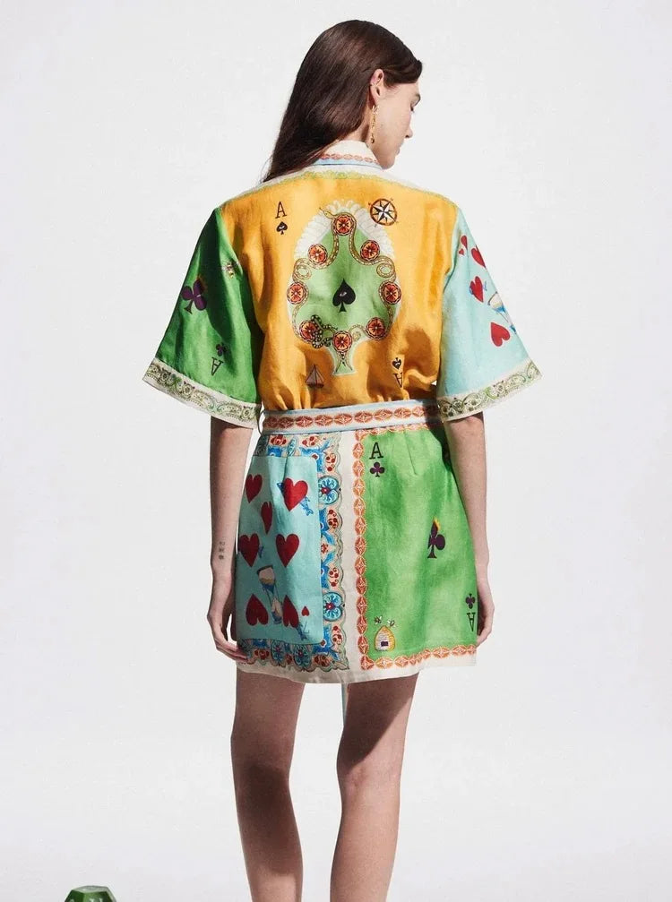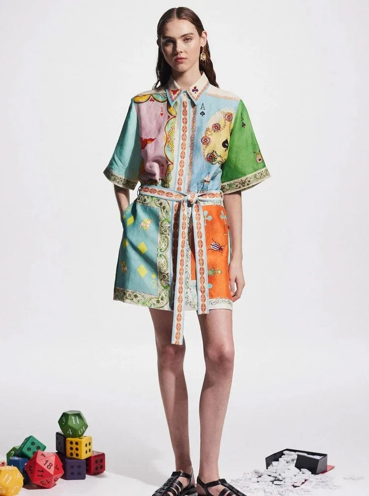 Entre no jogo com o Vestido Cards! Curto, leve e irresistivelmente confortável, ele combina a amarração na cintura que define a silhueta com mangas 3/4, trazendo uma dose extra de charme e estilo. Esse vestido é a escolha certa para quem não abre mão de estilo e praticidade, conquistando olhares e espaços com personalidade e leveza.
