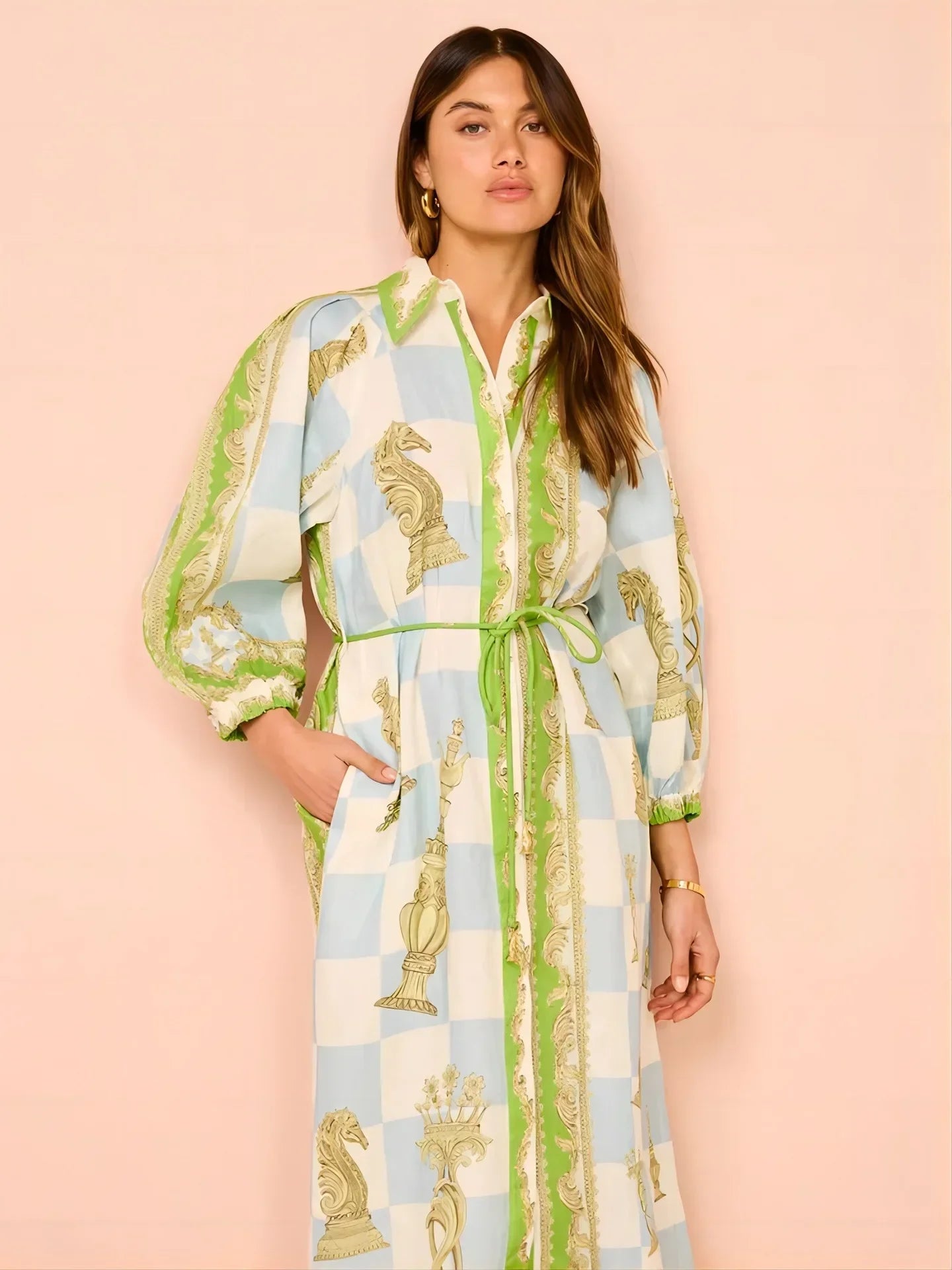 O Vestido Chess é para quem quer jogar para ganhar no mundo da moda! Com suas mangas longas e uma amarração estratégica na cintura, esse vestido realça sua figura com elegância e atitude. Cada detalhe foi pensado para trazer uma silhueta sofisticada e ao mesmo tempo poderosa, perfeita para mulheres que gostam de fazer movimentos ousados no estilo.