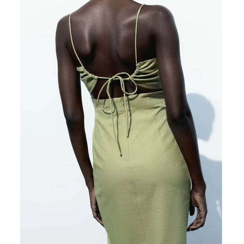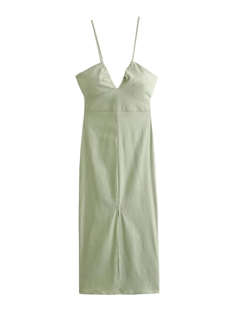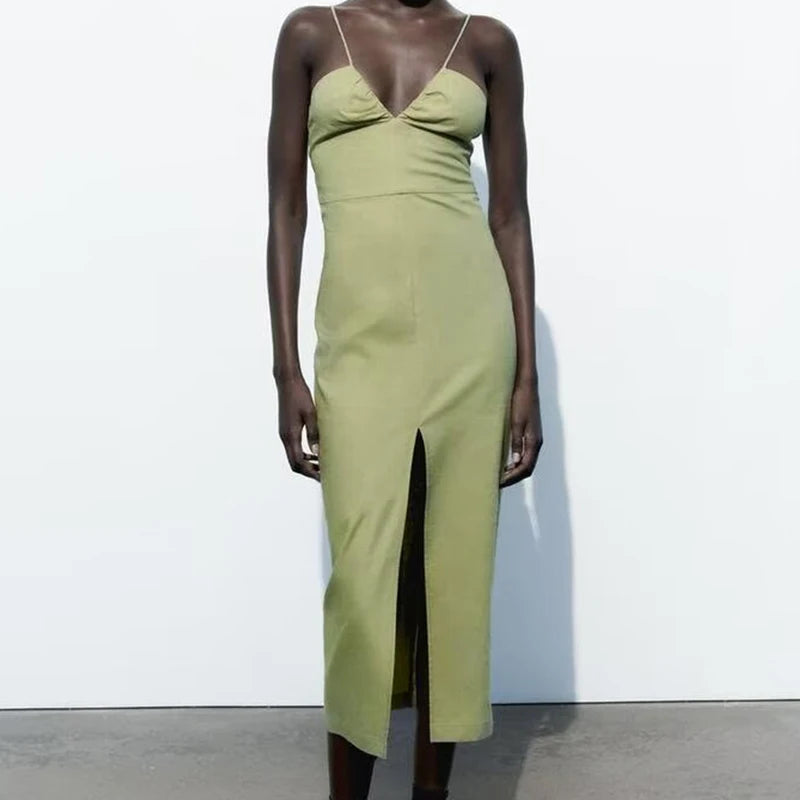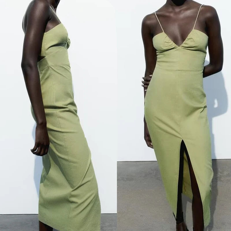 Feito para mulheres que exigem o melhor, o Ella apresenta uma frente única que acentua sua figura, um toque de linho que irradia sofisticação e uma fenda central que revela sua confiança e ousadia. Este vestido não apenas modela o corpo, mas transforma cada movimento em pura graça e sedução.