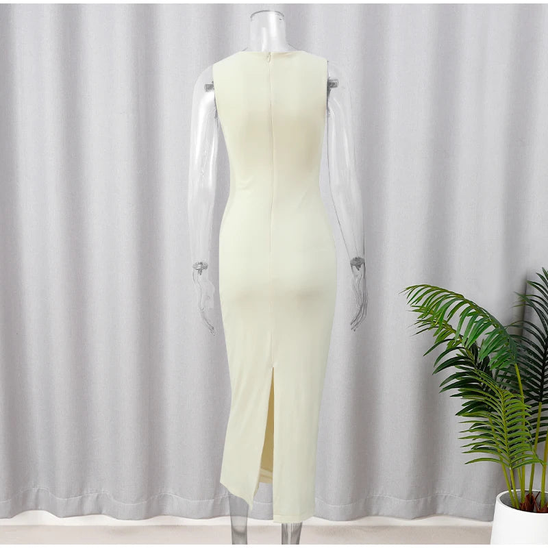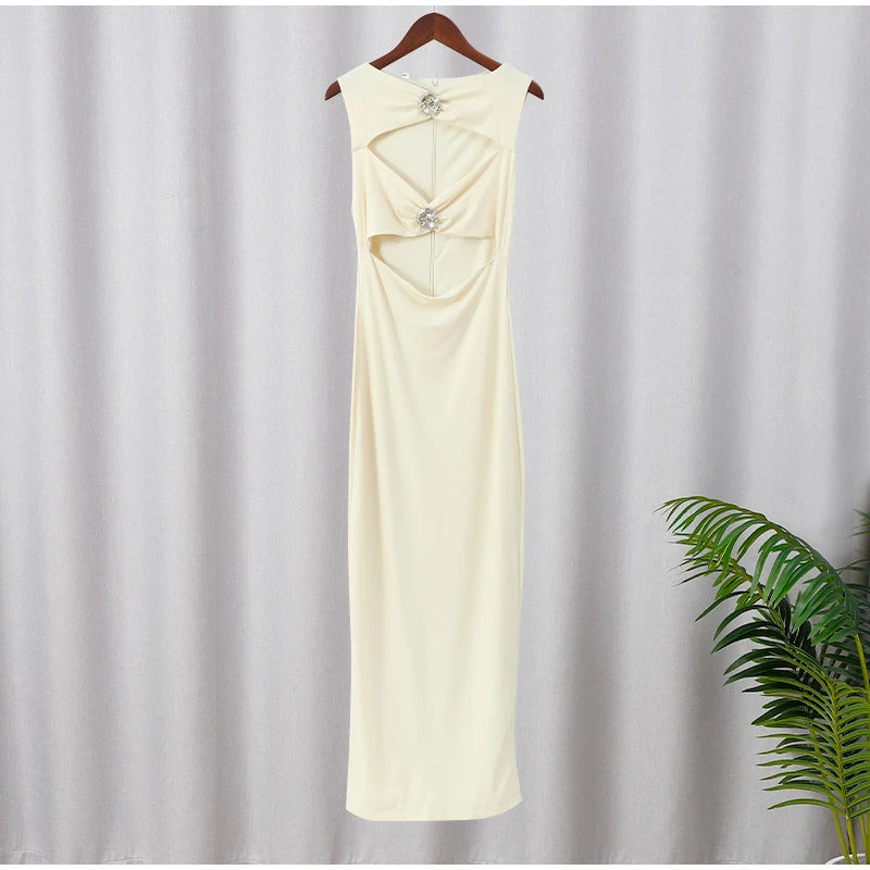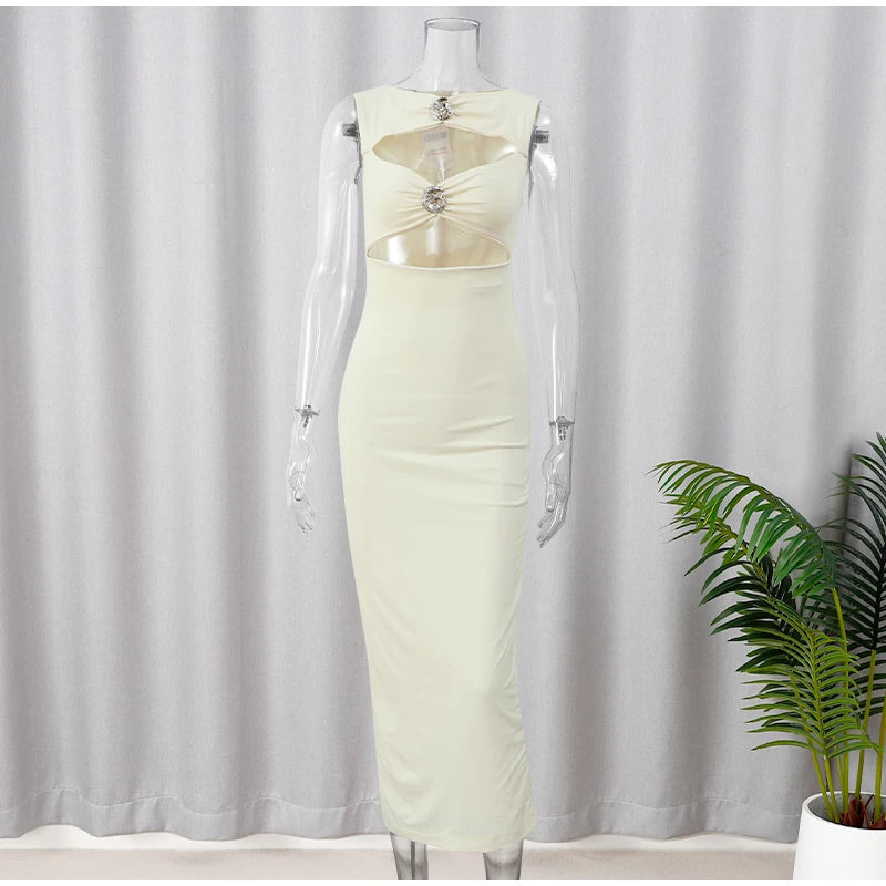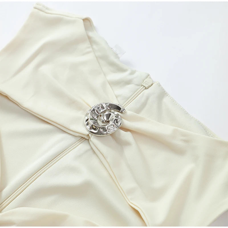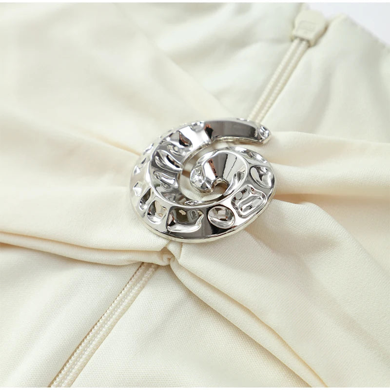 Prepare-se para brilhar com o Vestido Stella Midi! O branco puro encontra o poder das aplicações em metal, criando um contraste irresistível no decote frente única. Este vestido é pura sofisticação com um toque ousado — perfeito para destacar sua confiança e magnetismo. Cada detalhe foi pensado para transformar você no centro das atenções, com uma modelagem que valoriza suas curvas e traz aquele ar de elegância moderna.